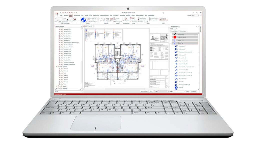 The RED CAD APP Elekto has a long history of success. It began life in the year 2000. Today over 5,000 users work with this success story and plan their installation designs. It combines intuitive operation and practical handling. In collaboration with electrical specialists and through the practical input of our customers the RED CAD APP Elektro is further developed on an ongoing basis and adapted to the needs of the market. Thanks to the simple and logical application, you will be drawing your first installation plans after only a very short time.
